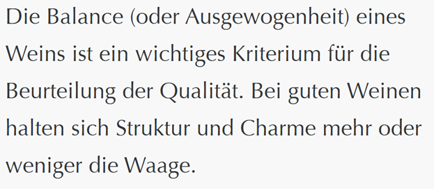Der Wein hat ein Gleichgewicht