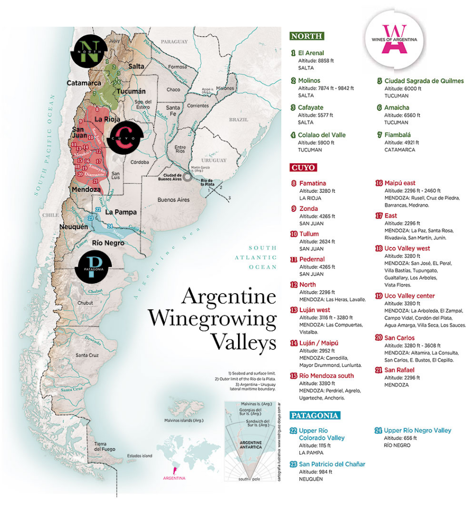 All das zeigt: Für den Genießer lohnt es sich, das Weinland Argentinien zu entdecken und zu erkunden. Die Vielfalt der Rebsorten ist für eine Weinbau-Nation in der sogenannten Neuen Welt bemerkenswert. Sie ist das Ergebnis verschiedener Einwanderungswellen in das Land. Eine schöne Übersicht der Anbaugebiete Argentiniens bietet diese Karte, die Wines of Argentina Vineblog24 zur Verfügung gestellt hat. Verschaffen Sie sich den Überblick – zum Beispiel im Argentinien-Sortiment von Vineshop24 – und finden Sie heraus, was Ihnen besonders schmeckt